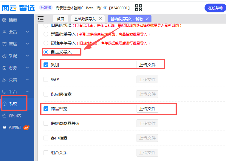 提示:需将转换后的数据,导入到智选系统里,可查看【基础数据导入】详细教程 。点击查看>>>智选后台:【系统】->【系统维护】->【基础数据导入】。
