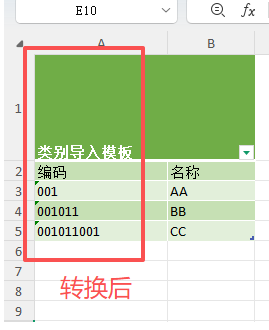 商品excel文件转化的列名为:类别编码,类别excel文件转化的列名为:编码