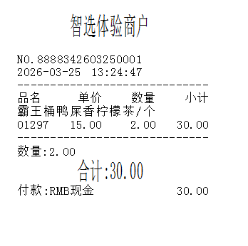 提示:需要提前在智选后台配置好对应的商品,前台自动可打印。