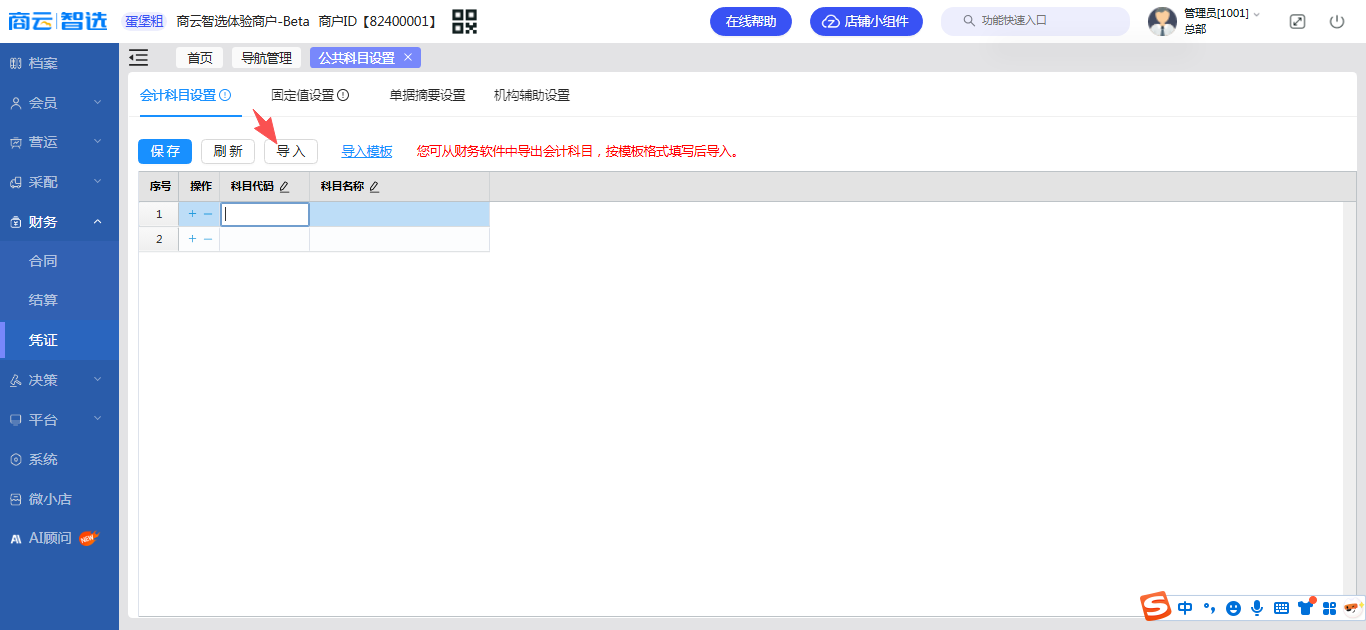 智选后台:【财务】->【凭证】->【基础设置】->【公共科目设置】