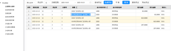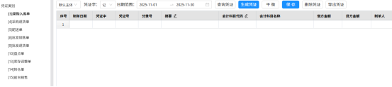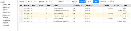 智选后台:【财务】->【凭证】->【凭证管理】->【凭证生成】