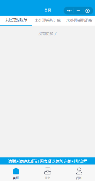 | ①首页 | ②报表业务 | ③单据 | ④子账号 |