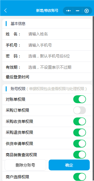 注:手机号是为登录账号,密码默认为手机号6位,供应商可在小程序端自行修改。