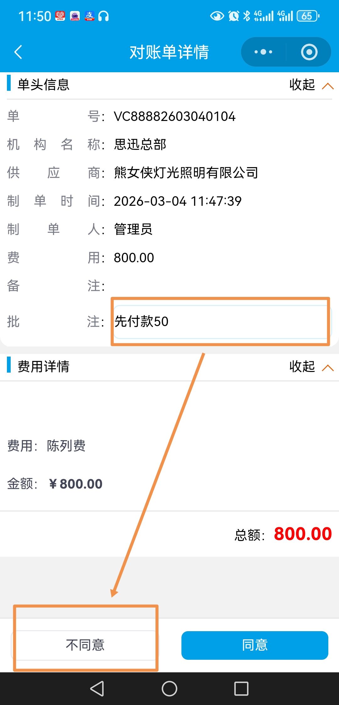 选择单据点击[同意】,商家在智选后台中才能审核“供应商预付单”。![]() |