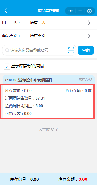 ☑勾选“显示库存为0的商品”可意音库存为0的商品。