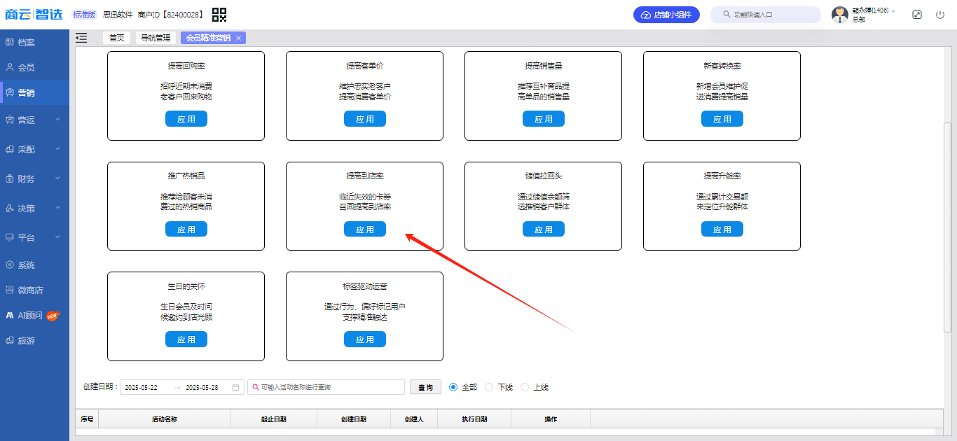 智选后台:【营销】->【营销管理】->【会员精准营销】